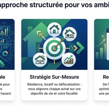 Que vous visiez la sérénité d'une résidence principale, le coup de cœur d'une résidence secondaire, ou la performance brute d'un investissement locatif, notre mission est claire : maximiser votre rentabilité et sécuriser votre plus-value. Défiscalisation, optimisation fiscale ou haute rentabilité, nous transformons vos objectifs en réalité concrète grâce à une gestion rigoureuse et un accompagnement de A à Z.